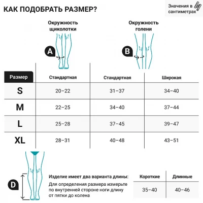 Гольфы Bauerfeind 1 класса компрессии - это всемирно популярный компрессионный трикотаж с повышенным содержанием микрофибры для легкости надевания и комфорта ношения. Лёгкость, мягкость, проницаемость Благодаря высокому содержанию микрофибры (50%), VenoTrain micro комфортно ощущаются на коже в течение всего дня, надевание трикотажа не вызывает затруднений. Благодаря уникальной технологии двойного обкручивания нити эластана микрофиброй достигается наилучший комфорт и предотвращение раздражений на коже, это также обеспечивает отличный температурный и водный баланс кожи. Perfect-Fit VenoTrain® micro максимально соответствуют форме ноги, как будто сделаны на заказ по индивидуальным меркам. Это возможно благодаря совершенной размерной системе Perfect-Fit (Идеальное Соответствие), которая основана на данных, полученных в результате измерения более 350 000 ног с помощью 3D цифровой измерительной системы Bodytronic 600. Стопа Стопа укреплена в тех зонах, которые подвергаются наибольшим нагрузкам при ношении. Остальная часть остаётся максимально подвижной для наибольшего комфорта. Преимущества Модный компрессионный трикотаж. Наиболее популярная линия элегантного компрессионного трикотажа. Внешне изделия VenoTrain® micro выглядят как стильные матовые чулки средней плотности. Создают распределенное давление, уменьшающееся от лодыжки к бедру, улучшая кровоток в венах. лечебный эффект гарантирован международным стандартом RAL; идеальная посадка и комфорт ношения обусловлены системой подбора размера Perfect-Fit; легкость надевания и отсутствие дискомфорта на протяжении всего периода использования благодаря 50% содержанию микрофибры в составе. УЗНАЙТЕ БОЛЬШЕ О КОМПРЕССИОННОМ ТРИКОТАЖЕ VENOTRAIN® КЛАСС КОМПРЕССИИ 1 класс (18-21 мм рт.ст.) Показания Отеки ног к вечеру, тяжесть и усталость в ногах, чувство распирания при отсутствии внешних признаков поражения вен. Болевые ощущения в ногах после статической нагрузки. Наследственная предрасположенность к заболеванию вен. Сосудистые звёздочки, сеточки и единичные расширенные вены ( длиной до 5 см). Беременность, начиная с 1 триместра. Противопоказания Хронические облитерирующие заболевания артерий нижних конечностей, когда регионарное систолическое давление на a.tibialis posterior ниже 80 мм рт. ст. Тяжёлые формы диабетической полинейропатии и ангиопатии. Декомпенсированная сердечно-лёгочная недостаточность. Трофические язвы невенозной этиологии. Острая инфекция мягких тканей. Септический флебит. Индивидуальная непереносимость материала. Нарушение чувствительности. Имеются противопоказания. Необходимо проконсультироваться со специалистом и ознакомиться с инструкцией по применению. Состав 65% полиамид 35% эластан Уход Все компрессионные изделия необходимо стирать ЕЖЕДНЕВНО для восстановления компрессионных свойств. Изделия желательно стирать вручную или в стиральной машине в деликатном режиме. Температура воды при ручной стирке не должна превышать 40С. В качестве моющих средств нужно выбирать жидкие слабощелочные шампуни или средства для стирки деликатных тканей. Нельзя использовать стиральные порошки и кондиционеры. После ручной стирки изделие нужно тщательно прополоскать в теплой воде. Нельзя сильно выкручивать изделие при отжиме. Лучше сушить изделие при комнатной температуре на сухом полотенце. Гарантийный срок на сохран