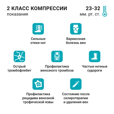 Мягкие и шелковистые колготки для женщин, которые ценят уют и комфорт. За счет высокого содержания микрофибры (55% микроволокон нейлона) колготки идеально подходят для холодного времени года, удобны в использовании и обладают повышенной износостойкостью. Колготки имеют специальную растяжимую вставку в области живота и широкую резинку, которая комфортно фиксирует колготки на уровне выше талии. Колготки VENOTEKS COMFORT 2С402 для беременных эффективно снимают усталость и тяжесть в ногах, уменьшают болевые ощущения, снимают дневные отеки предотвращают прогрессирование варикозной болезни и развитие её осложнений. Особенно они подойдут женщинам со статическими нагрузками (кто много сидит или стоит на работе). Преимущества мягкие и шелковистые колготки с микрофиброй можно носить в холодное время года, они хорошо сохраняют тепло и создают комфорт; материал «микрофибра» обеспечивает легкость надевания и придает повышенную износостойкость; благородный полуматовый оттенок полотна помогает маскировать косметические дефекты на ногах и делает женский образ элегантным; удобная эластичная вставка в области живота создает комфорт ношения в течение дня; укрепленная носочно-пяточная часть продлевают срок носки изделия. КЛАСС КОМПРЕССИИ 2 класс 23-32 мм рт. ст. Показания заболевания вен во время беременности; отечный синдром ног; расширенные вены длиной более 5 см, множественные расширенные вены, варикозные узлы без трофических нарушений; частые ночные судороги икроножных мышц; острый тромбофлебит; профилактика рецидива венозной трофической язвы. Противопоказания Эластичная компрессия противопоказана пациентам с заболеванием периферических артерий на поздних стадиях (снижение лодыжечно-плечевого индекса ниже 0,7),при тяжелых неврологических нарушениях, лимфангиите, аллергии к компонентам компрессионного изделия. При снижении давления на лодыжке ниже 100 мм рт.ст. (но не менее 60 мм рт.ст.) могут быть использованы изделия I класса компрессии. субкомпенсация и декомпенсация кровообращения (из-за опасности развития острой сердечной недостаточности), острый экссудативный дерматит. Имеются противопоказания. Необходимо проконсультироваться со специалистом и ознакомиться с инструкцией по применению. Уход Изделие рекомендуется стирать после каждого ношения для восстановления компрессионных свойств. Разрешена ручная стирка и машинная стирка в режиме для стирки деликатных тканей без машинного отжима при температуре не более 30°С. В качестве моющих средств нужно выбирать жидкие слабощелочные шампуни или средства для стирки деликатных тканей. Нельзя использовать стиральные порошки и кондиционеры. При машинной стирке необходимо стирать изделие в сетчатом мешочке для белья. После ручной стирки изделие нужно тщательно прополоскать в теплой воде. Отжим изделия производите вручную, завернув изделие в полотенце и слегка отжимая. Сушите изделие в расправленном виде при комнатной температуре или в прохладном месте на сухом полотенце. Силиконовые резинки-фиксаторы (если они предусмотрены в изделии) нужно беречь от попадания воды. Они будут хорошо прилипать к коже, если их протирать хлопковой тканью, смоченной 20%-м спиртовым раствором. Гарантийный срок трикотажа на сохранение компрессионных лечебных свойств - 6 месяцев со дня продажи Изделие м