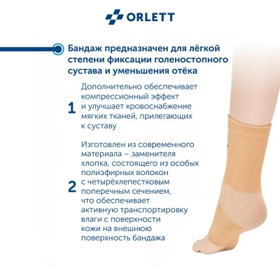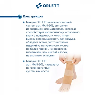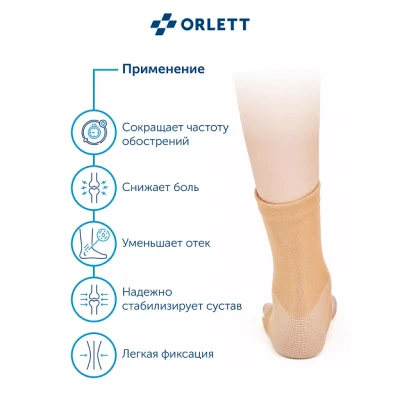 Голеностопный ортез предназначен для лёгкой степени фиксации голеностопного сустава и уменьшения отёка. Этот голеностопный бандаж дополнительно обеспечивает компрессионный эффект и улучшает кровоснабжение мягких тканей, прилегающих к суставу. Ортез на голеностопный сустав изготовлен из современного материала – заменителя хлопка, состоящего из особых полиэфирных волокон с четырёхлепестковым поперечным сечением, что обеспечивает активную транспортировку влаги с поверхности кожи на внешнюю поверхность бандажа. Показания: хроническая нестабильность голеностопного сустава; растяжения связок голеностопа; реабилитация после травм и заболеваний в области голеностопного сустава; профилактика развития и обострений хронического течения артритов, бурситов, тендовагинитов, а также спортивных и производственных травм. Преимущества: изготовлен из современного заменителя хлопка, что обеспечивает гигиену и комфорт даже в жаркую погоду; материал бандажа обладает всеми достоинствами изделий из натурального хлопка, но более прочный и износостойкий; материал бандажа не вызывает аллергии и раздражений кожи; бандаж практичен и очень прост в использовании. Подбор размера: Для правильного выбора подходящего размера голеностопного бандажа Orlett MAN-101 необходимо сантиметровой лентой измерить окружность голени над лодыжкой. Далее воспользоваться размерной таблицей. Состав: 32% полиэстер; 30% хлопок; 15% эластан; 23% латекс. Гарантийный срок - 6 месяцев со дня продажи Изделие медицинского назначения обмену и возврату не подлежит.