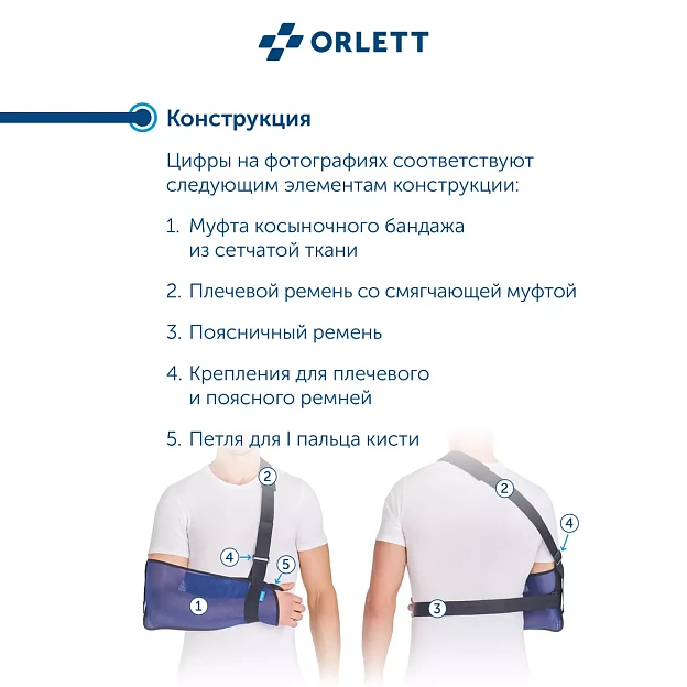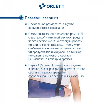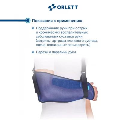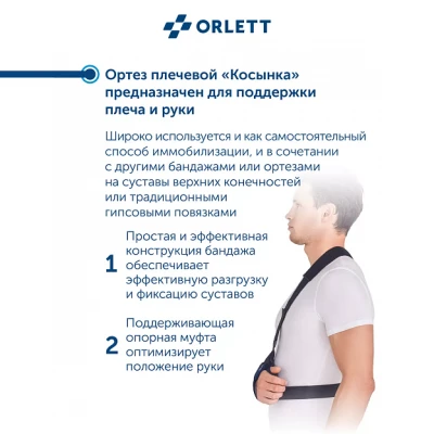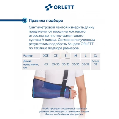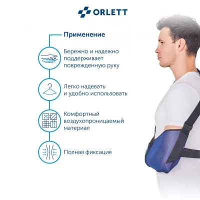 Ортез плечевой ORLETT AS-302 "Косынка" предназначен для поддержки плеча и руки, широко используется как самостоятельный способ иммобилизации, так и в сочетании с другими бандажами или ортезами на суставы верхних конечностей или традиционными гипсовыми повязками. Простая и эффективная конструкция бандажа обеспечивает эффективную разгрузку и фиксацию суставов в поддерживающей опорной муфте и оптимизирует положение руки. Преимущества: материал бандажа обладает высокой влаго- и воздухопроницаемостью, наплечные и поясной ремни выполнены из мягкой прочной ленты, обеспечивая комфорт ношения; за счёт особых лекал в области локтевого и лучезапястного суставов обеспечивается хорошее прилегание бандажа к руке; длина ремней легко регулируется благодаря наличию трёхлепестковых застёжек с липучками «Велкро»; имеет дополнительную петлю для большого пальца, что позволяет разгрузить кисть; пояс вокруг талии фиксирует руку к туловищу, что усиливает степень фиксации и позволяет применять ортез при сильных травмах. Показания: ушибы, реабилитация после подвывихов, вывихов и переломов костей руки; частичные повреждения связок плечевого сустава, акромиально-ключичного сочленения, локтевого сустава; поддержание руки при острых и хронических воспалительных заболеваниях суставов руки (артриты, артрозы плечевого сустава, плече-лопаточные периартриты); парезы и параличи руки. Правила подбора: Сантиметровой лентой измеряется длина предплечья от вершины локтевого отростка до пястнофалангового сустава V пальца. Согласно полученным результатам подобрать ортез по таблице подбора размеров. Изделие медицинского назначения обмену и возврату не подлежит.