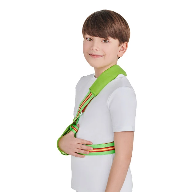 Ортез плечевой ORLETT AS-302(P) "Косынка" Предназначен для поддержки плеча и руки у детей и широко используется как самостоятельный способ иммобилизации, так и в сочетании с другими бандажами или ортезами на суставы верхних конечностей или традиционными гипсовыми повязками. Простая и эффективная конструкция бандажа обеспечивает эффективную разгрузку и фиксацию суставов в поддерживающей опорной муфте и оптимизирует положение руки. Показания: фиксация гипсовых повязок или ортезов руки с помощью поддерживающей опорной муфты; ушибы, реабилитация после подвывихов, вывихов и переломов руки; фиксация руки при острых и хронических воспалительных заболеваний суставов (артриты, артрозы плечевого сустава, плече-лопаточные периартриты); парезы и параличи руки. Преимущества: материал бандажа обладает высокой влаго- и воздухопроницаемостью, наплечные и поясной ремни выполнены из мягкой прочной ленты, обеспечивая комфорт ношения; за счёт особых лекал в области локтевого и лучезапястного суставов обеспечивается хорошее прилегание бандажа к руке; длина ремней легко регулируется благодаря наличию трёхлепестковых застёжек с липучками «Велкро»; имеет дополнительную петлю для большого пальца, что позволяет разгрузить кисть; пояс вокруг талии фиксирует руку к туловищу, что усиливает степень фиксации и позволяет применять ортез при сильных травмах. Правила подбора: Согласно полученным результатам подобрать ортез по таблице подбора размеров. Сантиметровой лентой измеряется длина предплечья от вершины локтевого отростка до пястнофалангового сустава V пальца. Согласно полученным результатам подобрать бандаж AS-302 по таблице подбора размеров. Гарантийный срок - 6 месяцев со дня продажи Изделие медицинского назначения обмену и возврату не подлежит.