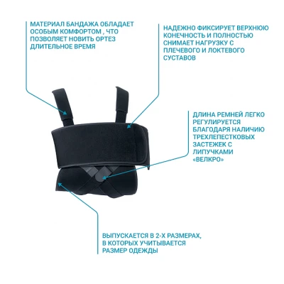 Ортез плечевой ORLETT SI-301 (по типу повязки Дезо) предназначен для иммобилизации верхней конечности. В зависимости от сборки ортеза (с фиксацией к туловищу или без) он оказывает поддержку руки или поддержку руки с фиксацией к туловищу. Для облегчения подбора и подгонки размера в этой модели ортеза предусмотрены Y-образные застёжки-липучки Велкро. Это позволяет при избытке длины наплечных ремней перестегнуть застёжку, отрезав лишнюю часть наплечного ремня и зафиксировать его на необходимой длине. Преимущества: материал бандажа обладает особым комфортом , что позволяет носить ортез длительное время; надёжно фиксирует верхнюю конечность и полностью снимает нагрузку с плечевого и локтевого суставов; длина ремней легко регулируется благодаря наличию трёхлепестковых застёжек с липучками «Велкро»; выпускается в 2-х размерах, в которых учитывается размер одежды. Показания: ушибы, вывихи и переломы плеча и локтевого сустава, неосложнённые переломы ключицы; реабилитация после травм и операций на руке; парезы и параличи верхней конечности; острые и хронические воспалительные заболевания суставов верхней конечности (артриты и артрозы плечевого сустава, плече-лопаточные периартриты). Правила подбора: Для правильного подбора ортеза ORLETT SI-301, необходимо измерить сантиметровой лентой (плотно, но не утягивая) окружность грудной клетки вместе с прижатой к грудной клетке рукой. Согласно полученным результатам подобрать бандаж по таблице подбора размеров. Гарантийный срок - 6 месяцев со дня продажи Изделие медицинского назначения обмену и возврату не подлежит.