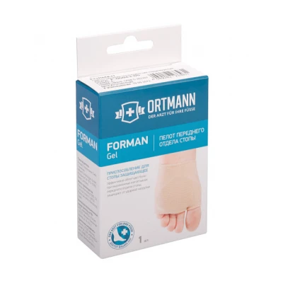 Подушечка Ortmann Forman предупреждает натирание стоп в самом проблемном месте – переднем отделе. Пелот эффективно предотвращает появление мозолей, натоптышей, натертостей и воспалений кожи. Также он защищает стопы от ударных нагрузок во время ходьбы. Защищающая гелевая подушечка прочно крепится на ноге долговечной эластичной трикотажной манжетой. Гель TRIBLOCK на 80% состоит из минеральных масел, которые эффективно увлажняют кожу и размягчают мозоли. Сама манжета очень мягкая и эластичная, благодаря чему она эффективно уменьшает боль и дискомфорт в стопах, совершенно не препятствуя кровотоку. Для удобства манжета имеет разделители для пальцев. Манжету можно выворачивать наизнанку и использовать как для правой, так и для левой стопы. Подходит для любого типа обуви. Показания: мозоли и натоптыши в основании пальцев; трещины и потёртости; поперечная распластанность стоп; травмы и деформации плюснефаланговых суставов; начальная и средняя степени Hallux Valgus (отклонение большого пальца стопы наружу). Оказываемые эффекты: защита от контакта с обувью; эффективное смягчение кожи в области контакта с гелем; защита переднего отдела стопы от ударных нагрузок; эффективное уменьшение боли и дискомфорта в стопах при ходьбе; пелот не препятствует кровотоку. Соответствие размеров: M - ширина стопы 8 см; L - ширина стопы 10 см. Уход: по мере загрязнения манжету, не вынимая подушечки, можно стирать в теплой воде с детским мылом; сушить вдали от нагревательных приборов и прямых солнечных лучей. Гарантийный срок - 30 дней со дня продажи (на сохранение механических свойств). Изделие медицинского назначения обмену и возврату не подлежит.