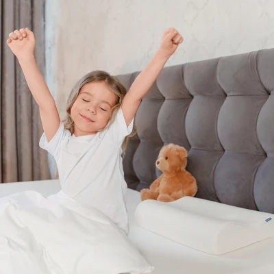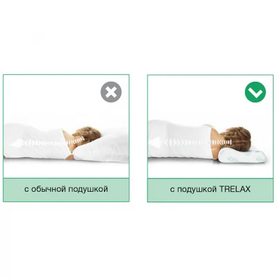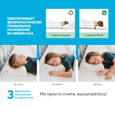 Ортопедическая подушка TRELAX Respecta Baby с эффектом памяти и ионами серебра разработана при участии врачей-ортопедов, обеспечивает физиологически правильное положение ребенка во время сна и отдыха. Данная модель предназначена для детей от 3-х лет до 8 лет, улучшает качество сна ребенка, снимает мышечное напряжения и нормализует кровообращение. Качественный сон - это инвестиция в здоровье! Подарите ребёнку возможность не просто спать, а по-настоящему высыпаться. TRELAX – эксперт здорового сна! Ортопедическая подушка TRELAX Respecta Baby гарантирует спокойный и полезный сон! Рекомендованная поза для сна: на спине, на боку и на животе. Преимущества и особенности: доказанная медицинская эффективность: одобрено и рекомендовано Росздравнадзором; ортопедическая форма ORTHOSHAPE: мягко поддерживает шейный отдел позвоночника ребёнка в анатомически правильном положении; пена с «эффектом памяти»: подушка подстраивается под особую анатомию каждого человека и обеспечивает необходимую ортопедическую поддержку; растет вместе с ребенком: подушка имеет два валика высотой 6 и 8 см, позволяет менять их расположение под шеей по мере роста ребёнка; антибактериальный эффект: ионы серебра в основе подушки обеспечивают антибактериальную и противовирусную защиту; наволочка из натурального эвкалиптового волокна Tencel мягкая и приятная на ощупь, отлично пропускает воздух и препятствует росту бактерий; съёмный внутренний чехол из 100% длинноволокнистого хлопка поддерживает оптимальный воздухообмен; гигиеничность: легкий уход за подушкой обеспечивается за счет съёмной наволочки и внутреннего чехла. К подушке вы можете приобрести дополнительную наволочку , которую удобно использовать при смене комплекта постельного белья. Важно! На ортопедической подушке желательно спать именно на специально предназначенной наволочке, так как она сконструирована по форме подушки. Благодаря особой тянущейся структуре ткани, она не сдерживает, а максимально передает эффект памяти ортопедической подушки. Оказываемые эффекты: улучшение качества сна; фиксация шейного отдела позвоночника и головы в физиологически правильном положении; оптимальная поддержка мышц шеи; расслабление мышц шеи; нормализация тонуса в мышцах шеи и плечевого пояса; нормализация кровообращения головного мозга. Показания нормализация тонуса в мышцах шеи и плечевого пояса; профилактика головных болей напряжения; профилактика развития остеохондропатии шейного отдела позвоночника; профилактика нарушения осанки; расслабление шейных мышц при миозите; улучшение кровоснабжения головного мозга при вертебро-базилярной недостаточности. Состав: Основа: вязкоэластичный пенополиуретан с ионами серебра; Чехол: 100% хлопок; Наволочка: 35% лиоцелл - Tencel (поверхность), 65% полиэстер. Рекомендации по уход: Уход за заготовкой подушки: Пенополиуретан стирать нельзя, для чистки снимите чехол и проветрите заготовку. При необходимости протрите хорошо отжатой тряпкой. Уход за наволочкой и чехлом: Наволочку и чехол, отдельно от подушки, можно подвергать машинной стирке при температуре не более 30°С (деликатный режим). Во избежание появления зацепок на поверхности материала рекомендуется перед стиркой вывернуть наволочку на изнаночную сторону. Не использовать отбеливатели и органические растворители. Не применять сушку в ба