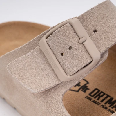 Женские ортопедические пантолеты Ortmann Vegas – яркая и комфортная модель, подходящая для повседневного ношения и долгих прогулок на природе и в городе, а также для людей, которые много времени проводят на ногах (продавцы, повара, медики и т.п.). Увеличенная внутриобувная конструкция мыскового пространства с покрытием из микрофибры облегчает симптомы дискомфорта при таких патологиях стоп, как широкая стопа, а благодаря крою модели и регулировке ремешками пантолеты легко надеть на высокий подъем. Несъемные ортопедические стельки с поддержкой сводов, с покрытием из натуральной замши, основой из коры пробкового дуба и карбоновым наполнителем SOFT обеспечивают максимальное удобство при длительном нахождении на ногах. Пантолеты предусматривают следующие функциональные элементы: Опора продольного свода стопы; Опора переднего отдела стопы для поддержки поперечного свода; Специальное чашеобразное углубление для пятки для фиксации стопы в правильном положении; Внутренняя и внешняя продольная опора, обеспечивающая устойчивость при ходьбе и не позволяющая стопе смещаться; Высокий передний край, защищающий пальцы от внешних воздействий; Опора и разделитель пальцев, удерживающий пальцы ног в правильном положении; Износостойкая нескользящая подошва из ЭВА толщиной 8 мм. Показания В комплексной терапии при маловыраженных и умеренных деформациях стопы: продольном плоскостопии, поперечном плоскостопии, комбинированном плоскостопии, вальгусной и плосковальгусной деформации стопы, высокий свод и полая стопа, отеках различной этиологии, плантарном фасциите (пяточная шпора). Преимущества Правильно перераспределяют нагрузку на своды стопы и удерживают пальцы в правильном положении при ходьбе; Удерживают пятку в анатомически правильном положении, уменьшают нагрузку на голеностопный сустав; Обеспечивают комфорт, равновесие и устойчивость при ходьбе; Уменьшают болевые ощущения при ходьбе, компенсирует ударную нагрузку на суставы ног и позвоночник; Помогают работе мышечно-венозной помпы, улучшают отток венозной крови из нижних конечностей; Состав Материал верха – натуральная замша Материал подкладки – микрофибра Материал подошвы – ЭВА Рекомендации по уходу Чистить обувь не менее раза в неделю; Грязную обувь сначала следует очистить специальной щеткой, влажной тряпкой или губкой, не давая грязи впитаться; Для чистки обуви используйте средства в соответствии с материалом обуви; Обувь сушить при комнатной температуре, предварительно набив ее бумагой, или используя специальные распорки. Не сушите обувь около огня, на батарее, на солнце, при помощи нагревательных приборов. Не оставляйте на хранение обувь в грязном мокром состоянии, т.к. это может стать причиной изменения цвета, а также привести к деформации. Избегайте воздействия на материал верха обуви щелочей, кислот и других активных растворителей. Страна производитель Германия Гарантийный срок – 30 дней со дня покупки.