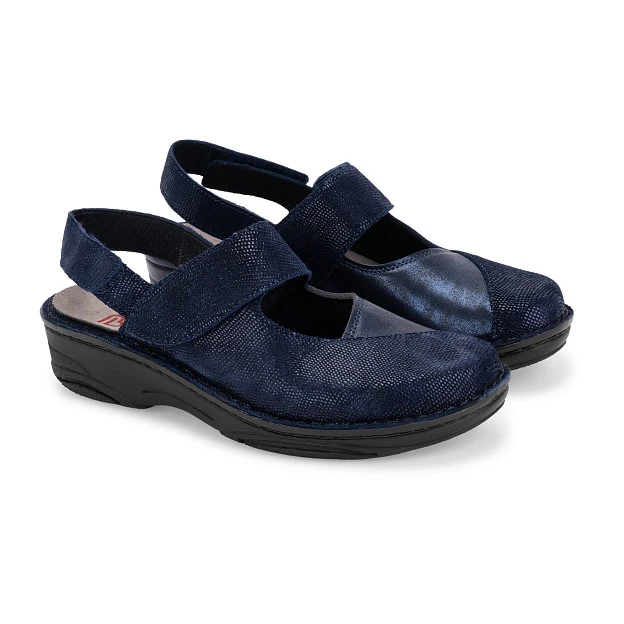 Женские ортопедические туфли Berkemann Helene из линейки Stretch – стильная и комфортная модель из мягкой натуральной кожи со вставкой из эластичной экокожи в боковой части, подходящая для повседневного ношения и долгих прогулок на природе и в городе. Модель подойдет людям с проблемными ногами (вальгусная постановка первого пальца, широкая стопа и т.п.). Фиксация и регулировка по полноте осуществляется за счет ремешка по подъему и заднего ремешка на липучках велкро, которые обеспечивают полное раскрытие и легкость надевания и снятия. Внутренняя часть обуви покрыта натуральной кожей, в области «косточки» - мягким, высокоэластичным материалом, который повторяет форму стопы, снижает напряжение и устраняет чувство дискомфорта, связанное с давлением и натиранием. Съемные ортопедические пятифазные стельки с поддержкой сводов с покрытием из натуральной замши обеспечивают максимальное удобство при длительном нахождении на ногах. Модель оснащена широкой подошвой из облегченного полиуретана. Показания В комплексной терапии при маловыраженных и умеренных деформациях стопы: продольном плоскостопии, поперечном плоскостопии, комбинированном плоскостопии, вальгусной и плосковальгусной деформации стопы, вальгусной постановке первого пальца (Hallux Valgus), высокий свод и полая стопа, отеках различной этиологии, плантарном фасциите (пяточная шпора). Преимущества Чашеобразное углубление стельки в области пятки для стабилизации заднего отдела стопы; Внутренняя часть обуви покрыта мягким, высокоэластичным материалом, который уменьшает дискомфорт, связанный с давлением и натиранием; Комфорт, равновесие и устойчивость при ходьбе; Уменьшение болевых ощущений при ходьбе, компенсация ударной нагрузки на суставы ног и позвоночник; Снижение утомляемости ног; Пятифазная стелька Оригинальная пятифазная стелька, состоящая из пяти последовательных зон от пятки к мысу: Поглотитель ударной нагрузки на пятку: давление, возникающее при ходьбе, равномерно распределяется и стабилизирует пяточную кость; Начало переката стопы: небольшой подъем по краю стельки помогает удерживать стопу в равновесии; Поддержка продольного свода стопы: предотвращает «заваливание» стопы. Стопа направлена к внешней стороне; Поддержка поперечного свода стопы: способствует распределению давления на всю стопу; Перекат на большой палец: с помощью большого пальца ноги усилие при ходьбе направляется на следующий шаг, что облегчает завершение шага и поддерживает его. Состав Материал верха – натуральная кожа/эластичная экокожа Материал подкладки – натуральная кожа/микрофибра Материал подошвы – полиуретан Материал стельки – натуральная замша Рекомендации по уходу Чистить обувь не менее раза в неделю; Грязную обувь сначала следует очистить специальной щеткой, влажной тряпкой или губкой, не давая грязи впитаться; Для чистки обуви используйте средства в соответствии с материалом обуви; Обувь сушить при комнатной температуре, предварительно набив ее бумагой, или используя специальные распорки. Не сушите обувь около огня, на батарее, на солнце, при помощи нагревательных приборов. Не оставляйте на хранение обувь в грязном мокром состоянии, т.к. это может стать причиной изменения цвета, а также привести к деформации. Избегайте воздействия на материал верха обуви щелочей, кислот 